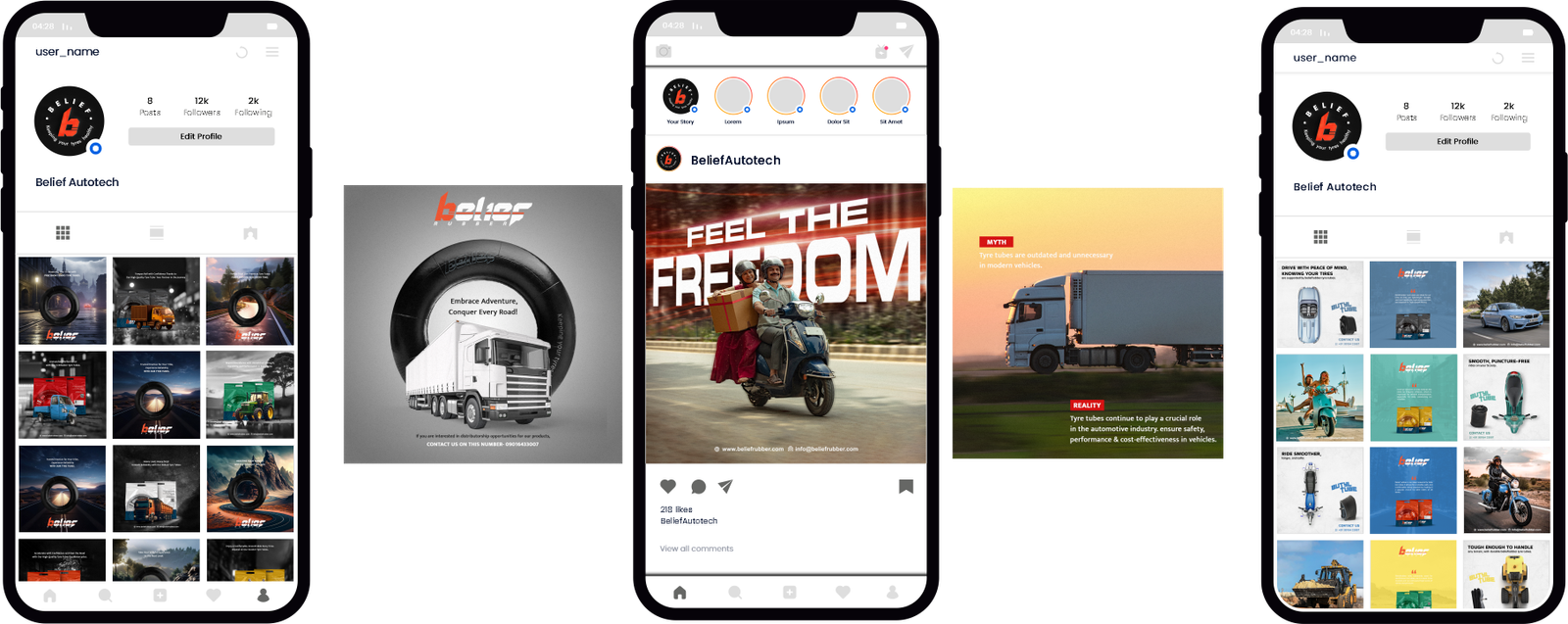 We took a deep dive into the world of Belief Autotech, designing every aspect of their brand identity. Our journey began with the creation of a captivating red and white logo, A strong symbol that represents the innovation and precision of Belief Autotech. We extended our creative expertise to social media, crafting an immersive website that not only showcases a wide array of innovative automotive solutions but also ensures a seamless user experience. Complementing this digital transformation, we crafted a striking brochure, a tangible piece of art that serves as a comprehensive guide to their products and services. This is the story of our partnership with Belief Autotech, a story etched in the colors of passion and precision, empowering their brand and leaving an indelible mark in the automotive industry.